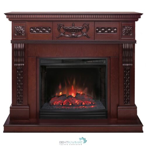 Электрокамин в сборе. Классический стиль, материал - МДФ, покрытый ПВХ-плёнкой. Цвет античный орех.