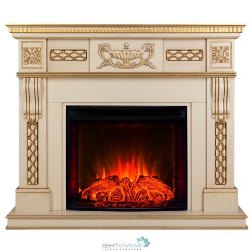 Электрокамин в сборе. Классический стиль, материал - МДФ, покрытый ПВХ-плёнкой. Цвет беленый дуб.