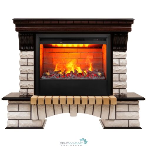 Электрокамин Country. Обрамление контрастных оттенков в стиле ""кантри"" укомплектовано реалистичным очагом Helios 26 3D. Высокая реалистичность пламени обеспечивается технологией ""3D камины"".