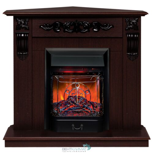 Миниатюрный угловой камин, украшенный сдержанным цветочным орнаментом. Легко дополнит классический интерьер и не займет много места. Очаг с открытым муляжом выполнен в точной копии тлеющих углей и небольших поленьев. Оригинальности и схожести с натуральным камином добавляет ажурная кованая решетка и звук потрескивания дров.