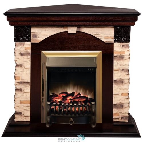 Электрокамин Dublin Corner Rock AO с очагом Fobos Lux Brass
