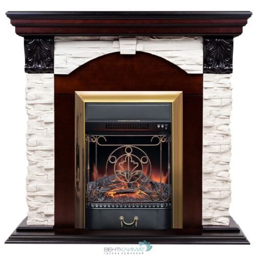 Электрокамин Dublin Lux AO с очагом Majestic Lux Brass