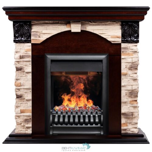 Каменный портал Dublin ROCK изготовлен из из искусственного камня и шпонированного МДФ. Представлен с очагом 3D Oregan