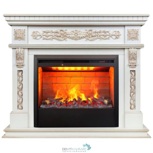 Каминокомплект Estella с очагом Helios 26 3D. Электрический очаг с эффектом пламени 3D нового поколения. Обрамление цвета WT-519G белый дуб с золотой патиной. Выполнен из МДФ и шпона. Эта модель прекрасно вписывается в современный интерьер квартиры или загородного дома.