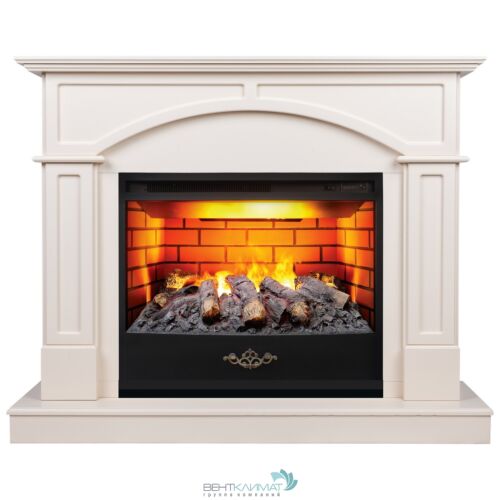 Обрамление дополняет современный широкоформатный электроочаг. Особенности конструкции очага предусматривают вывод горячего воздуха через специальную решетку в верхней части топки, за счет чего корпус и стекло не нагреваются и остаются безопасными для окружающих. Широкий функционал включает регулировку яркости и мощности обогрева, звук потрескивания дров и пульт дистанционного управления.