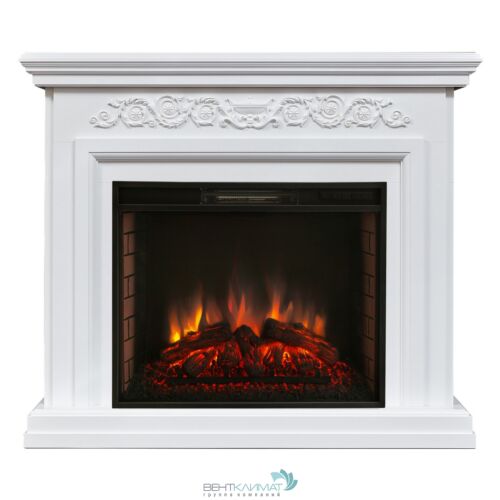 Электрокамин в сборе с широким очагом Epsilon 26 LED S. Выполнен в классическом стиле, изготовлен из высококачественного шпонированного МДФ в цвете белый матовый (WT - P511).