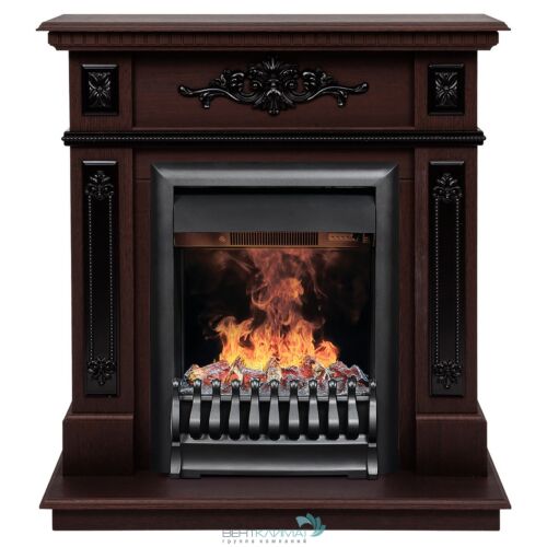 Электрический камин в сборе с очагом Oregan 3D. Портал изготовлен из МДФ, в цвете DN-F817 "темный орех". Очаг Oregan 3D достоверно передает эффект горения пламени. Предусмотрена регулировка высоты пламени. 2 режима обогрева (0,75 или 1,5 Квт)