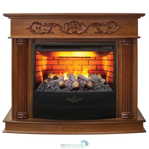 Электрокамин в сборе. Классический стиль, материал - МДФ + шпон. Античный дуб. Представлен с очагом 3D Firestar 25,5.
