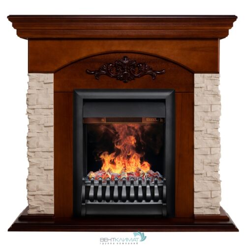Каменный портал Neapolis изготовлен из из искусственного камня и шпонированного МДФ. Представлен с очагом 3D Oregan