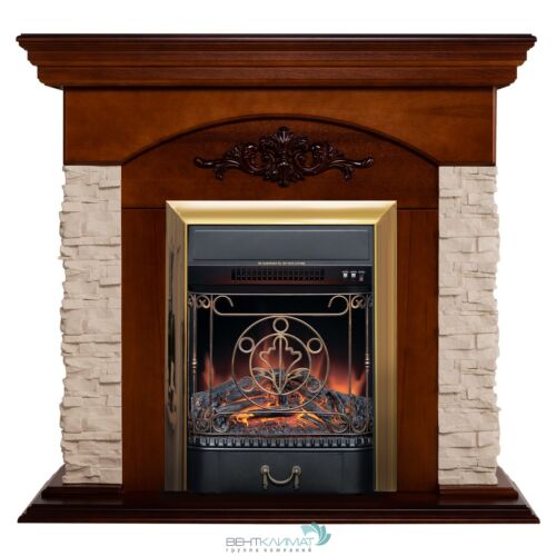 Электрокамин Neapolis NT с очагом Majestic Lux Brass