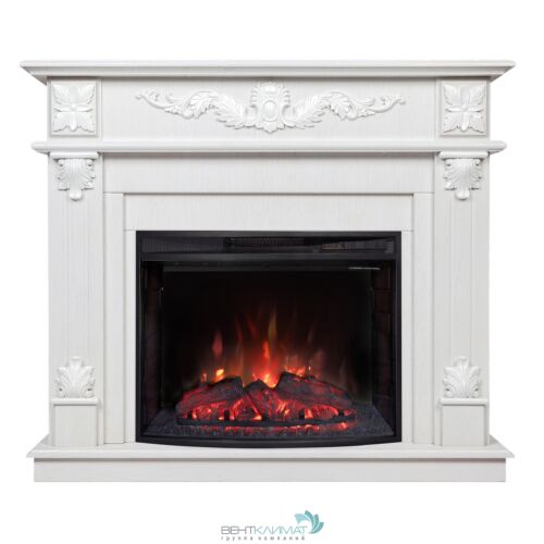 Электрокамин в сборе. Классический стиль, материал - МДФ, покрытый ПВХ-плёнкой. Цвет - белый дуб.