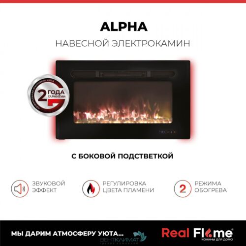 Электрокамин RealFlame Alpha с камнями, обогрев, пульт ду.
