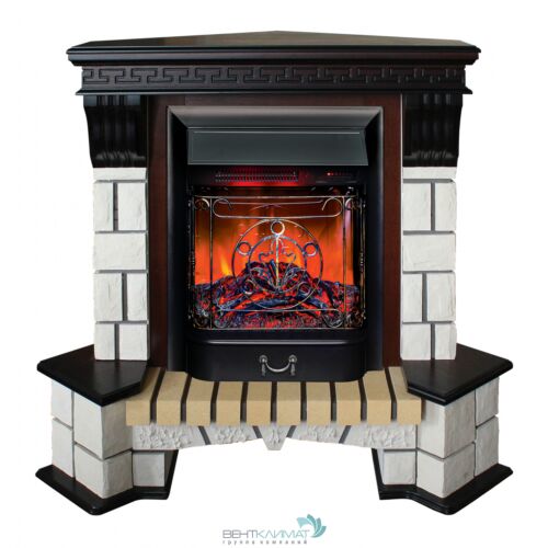 Электрокамин RealFlame Stone Coner AO с Majestic Lux BL, звук потрескивания дров