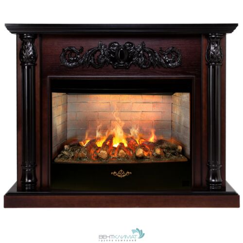Электрический камин Salford с 3D-очагом FireStar 3D. Изготовлен из шпонированной МДФ, цвет AO-257 ""античный дуб"". Портал выполнен в классическом стиле. Украшен резьбой по дереву.