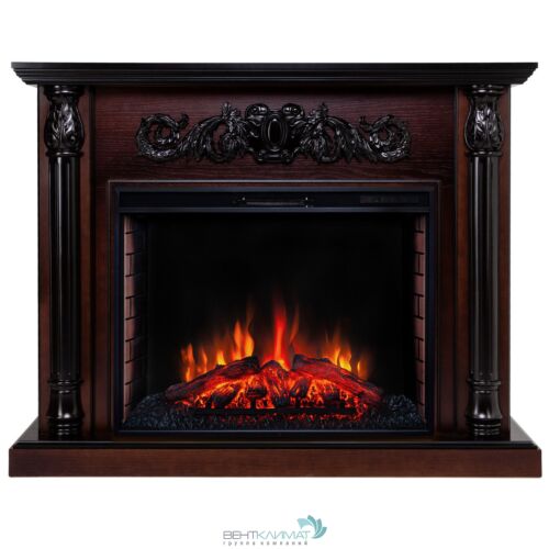 Обрамление SALFORD выглядит классически строго и шикарно. Передняя часть боковых стенок, обрамляющих очаг, оформлена в виде колонн, по поверхности которых протянуты резные каннелюры. Верхняя часть колонн выполнена в форме резных бутонов. На колонны опирается каминная крышка со ступенчатым карнизом. Панель под крышкой оформлена сложным растительным орнаментом. Устанавливается же вся конструкция на невысокое основание.