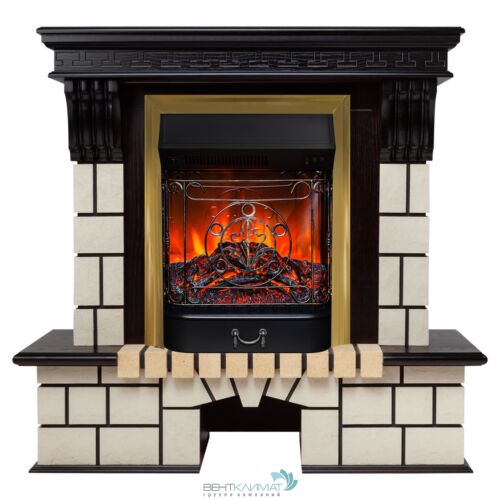 Электрокамин Stone STD AO с очагом Majestic Lux Brass