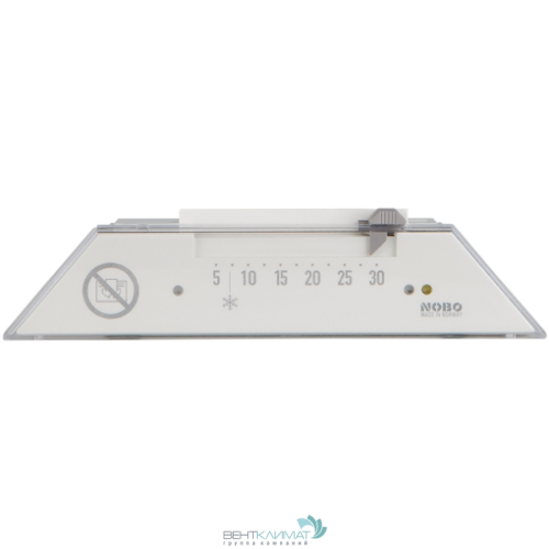 Термостат Nobo R80 XSC имеет бегунок для установки желаемой температуры, а также три индикатора (включения, нагрева и экономии электроэнергии).